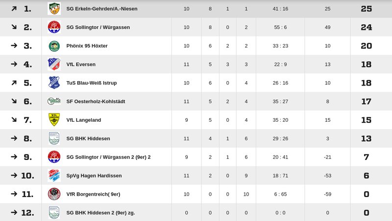 Die Damen-SG Erkeln/Gehrden/Altenheerse/Niesen führt nach Jahren der Durchschnittlichkeit in diesem Jahr überraschend die Tabelle an und ist damit Herbstmeister. Herzlichen Glückwunsch!